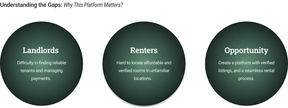 Tackling the Chaos of Room Rentals for both urban and nature-based properties. The room rental market is fragmented, with renters struggling to find verified, affordable listings, especially for quiet spaces near nature.
